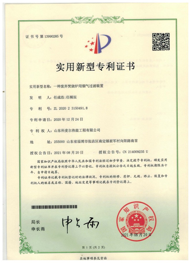 焚烧设计温度1400摄氏度,使用温度在400-900摄氏度之间调整;烟气排放温度60-80摄氏度。